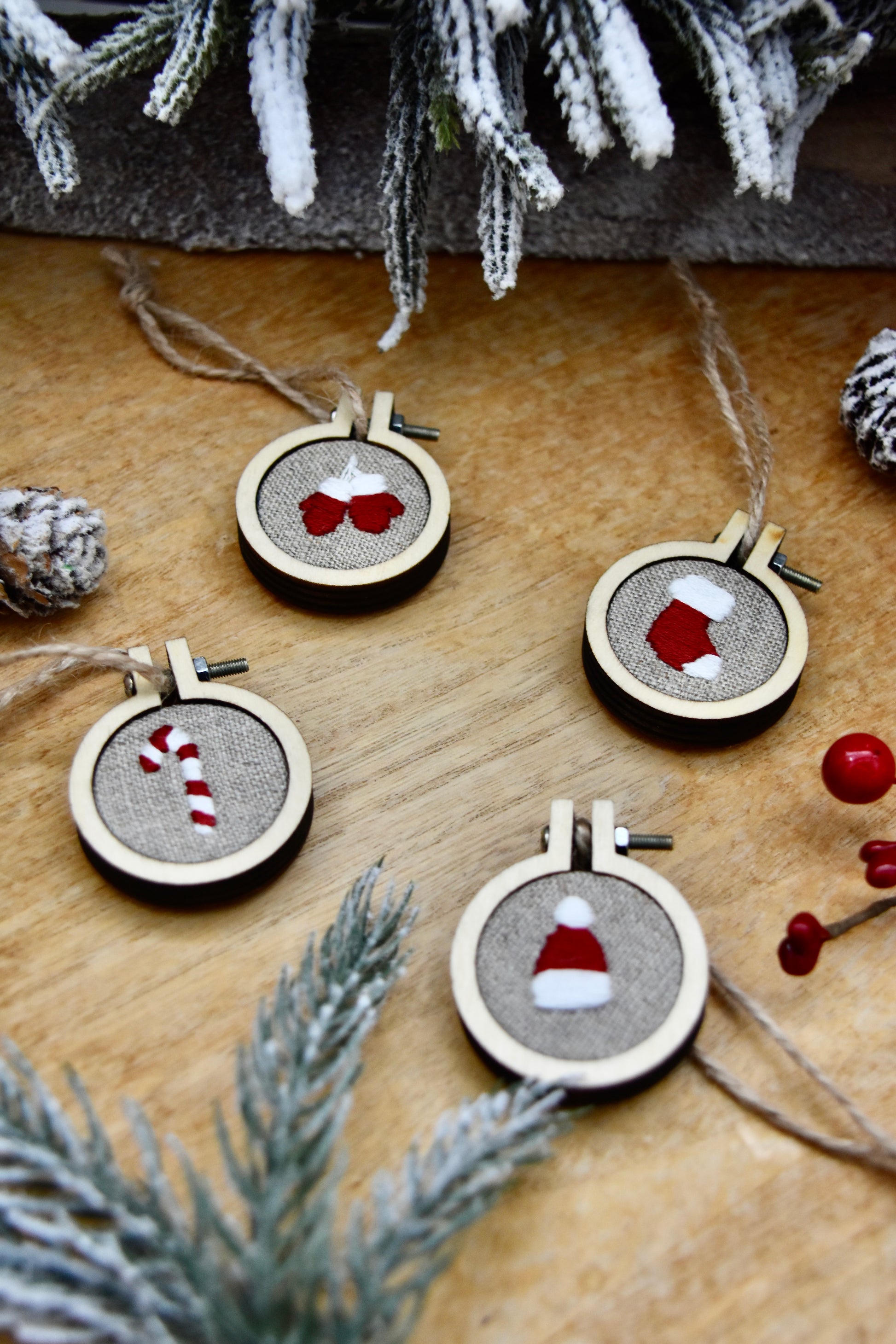 Décorations mini broderies de Noël (Lot de 4)