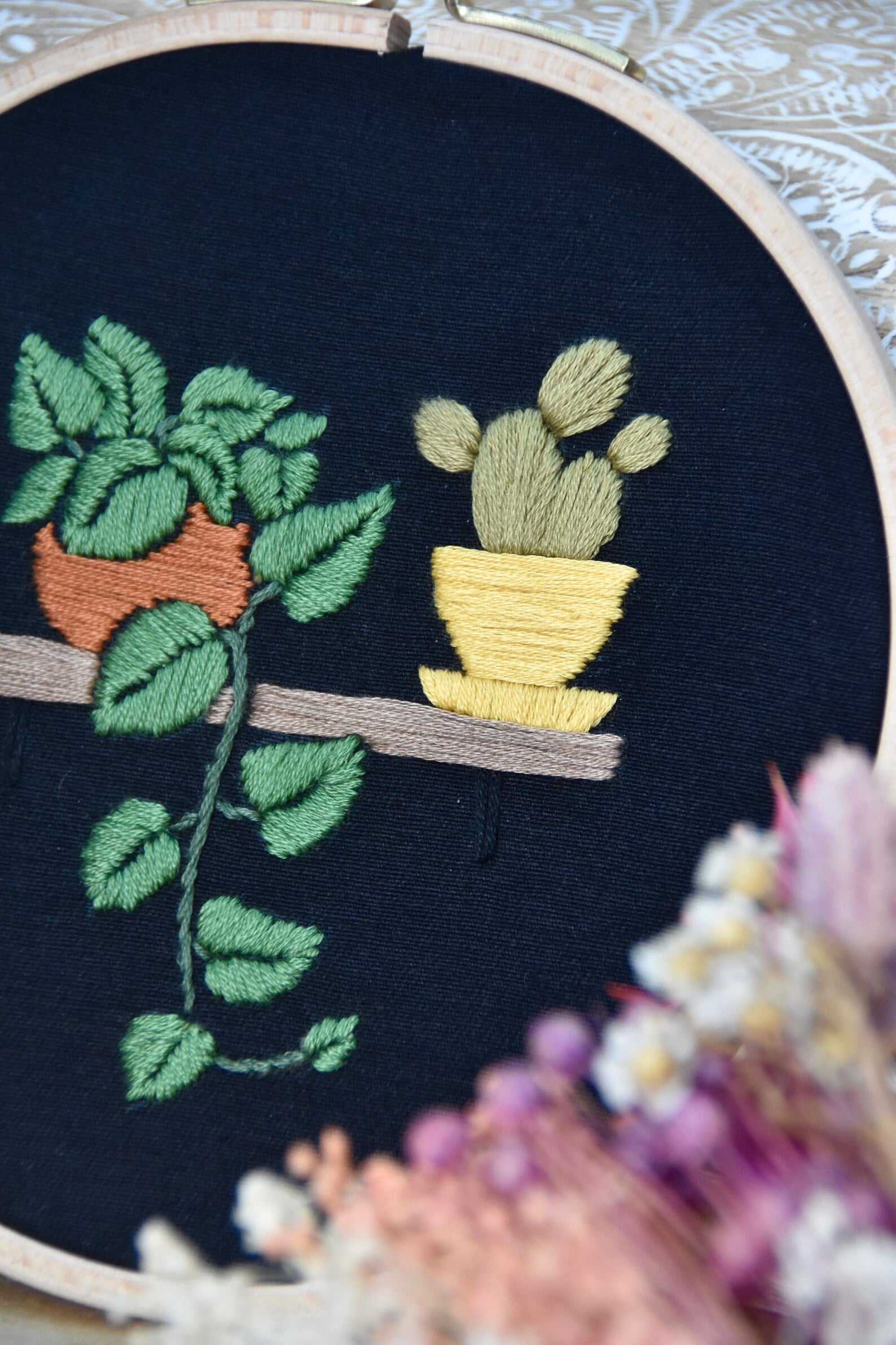 ☆ Cette broderie fera le bonheur des plantes addict. Parfaite pour apporter une touche de douceur dans votre intérieur, vous pourrez l'accrocher au mur ou la poser sur une étagère.
