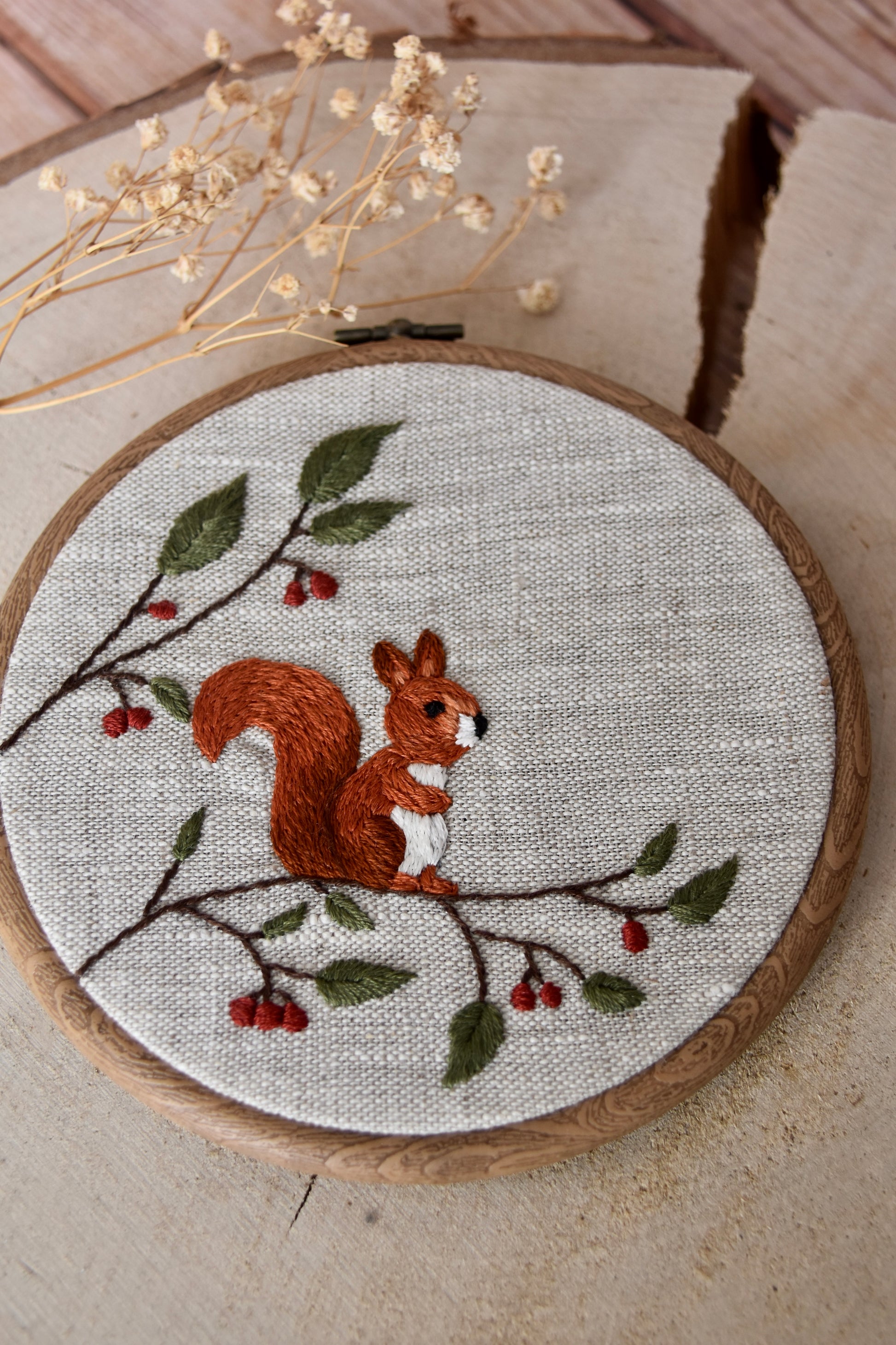 ☆ Apportez une touche de poésie et de légèreté à votre décoration avec ce tambour brodé à la main représentant Mireuil, un petit écureuil facétieux et gourmand. Cette broderie est idéale pour embellir la chambre de votre enfant, en l'accrochant au mur ou en la posant sur une étagère.